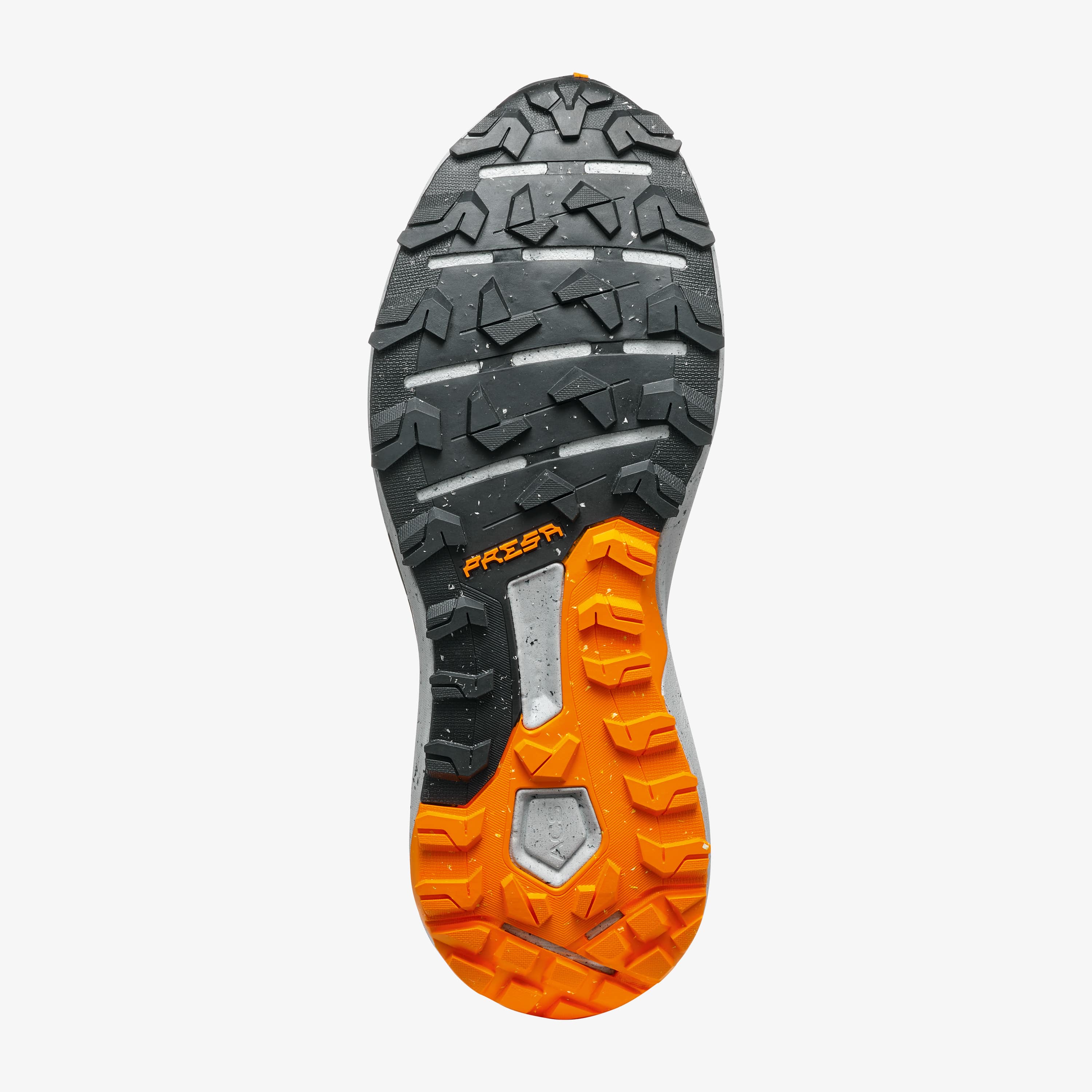 Comfort and sustainable performance are the core principles behind PRESA® TRN-06, featuring a high content of recycled materials, including an outsole made of 30% recycled rubber. Its wide lugs, low-profile studs, and rubber grooves enhance flexibility and adaptability, making it ideal for long runs on moderately challenging trails, ensuring a fast and smooth stride on any surface.